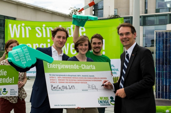 Ingbert Liebing hat vor dem Bundeskanzleramt die Energiewende-Charta der Initiative „Energie in Bürgerhand“ unterschrieben. Ingbert Liebing begrüßt grundsätzlich solche Bürgerenergieprojekte, die aktiv die Chancen der Energiewende nutzen, um eine höhere Wertschöpfung in ländlichen Räumen zu erreichen.