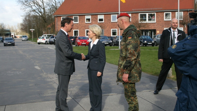 Von der Leyen verkündete, dass die Bundeswehr in den kommenden Jahren 60 Millionen Euro in den Standort Husum investieren wird. Das Geld fließe vor allem in Infrastrukturmaßnahmen wie die Modernisierung von Unterkunftsgebäuden.